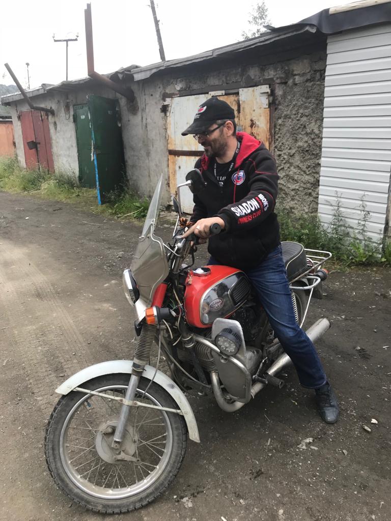 Почти все проезжающие мототуристы заезжают к нему на огонек. Он помог нам с размещением в хостеле и предоставил гаражи под моты...