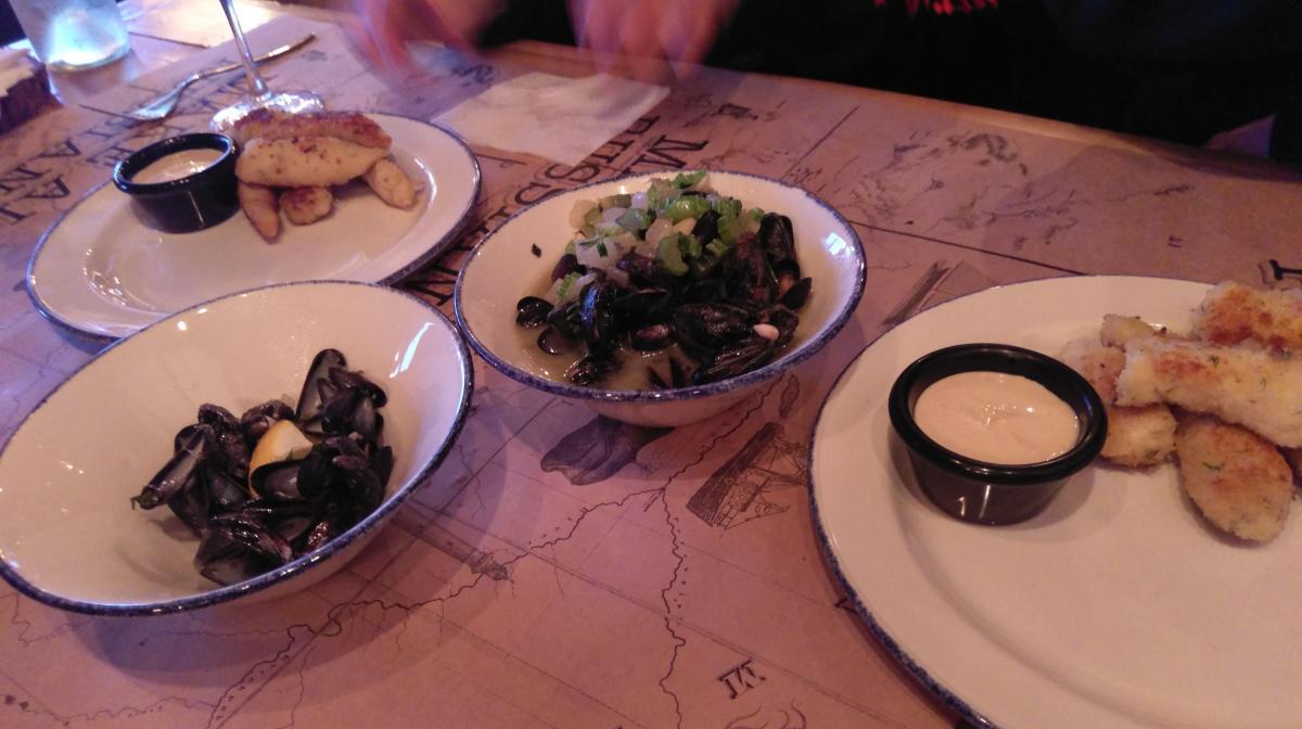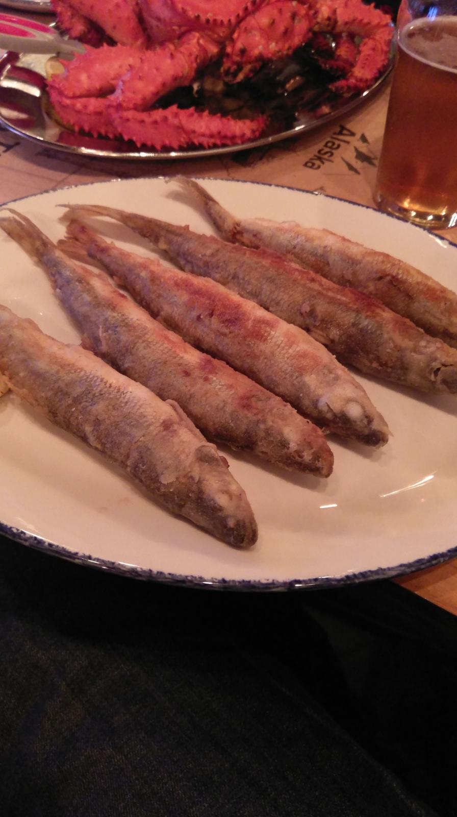 Взяли местных мидий, краба, корюшку, трубача...